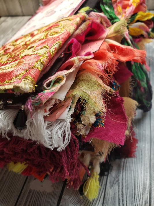 A Junk Journal is a handmade book of recycled and found materials and ephemera. The pages can be used to write, draw, paint or record memories, thoughts, ideas, and inspiration. The finished junk journal can become anything you want